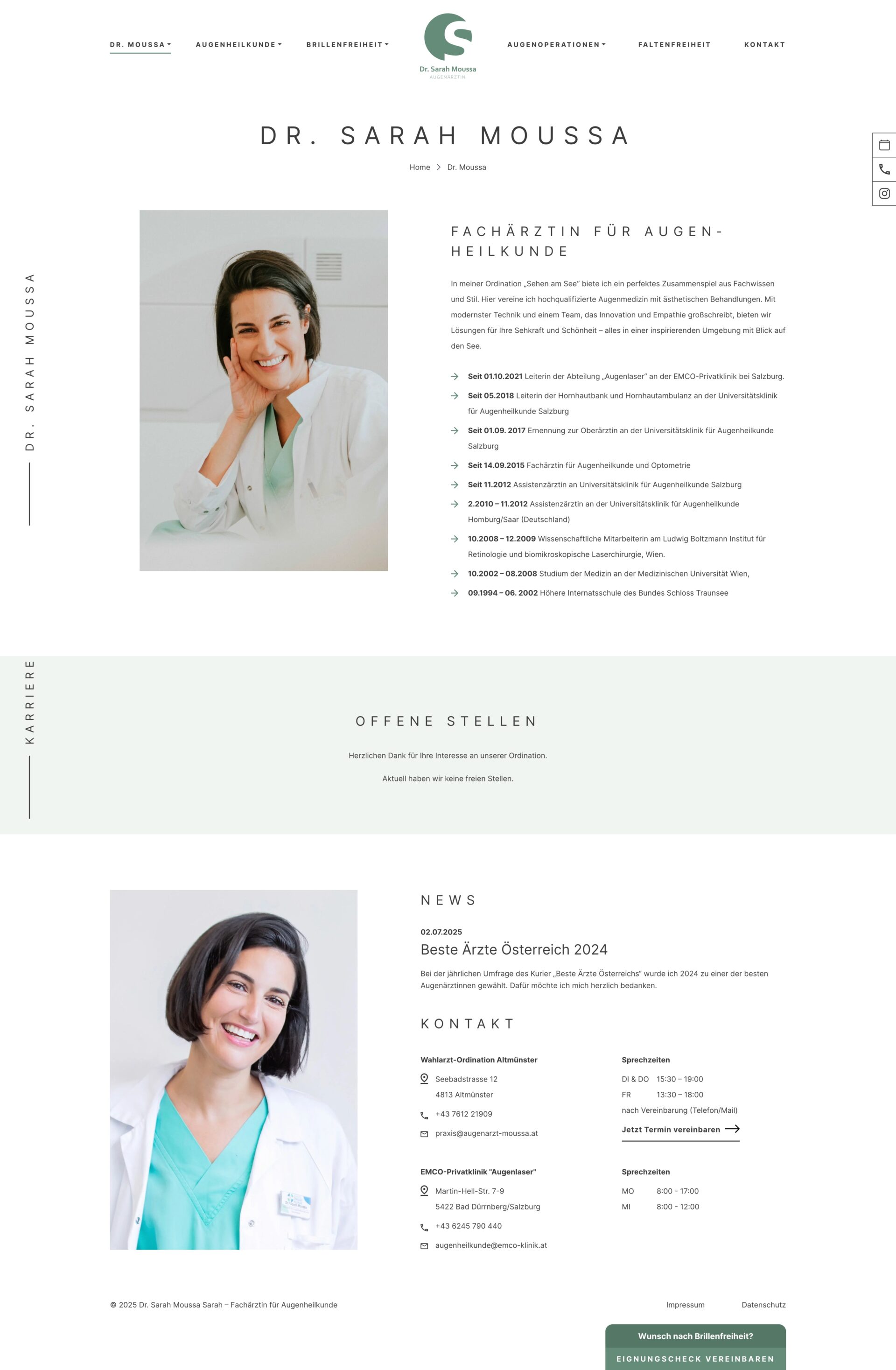 Für Dr. Sarah Moussa durften wir sowohl das Logo als auch die Website entwickeln. Der Schwerpunkt lag darauf, ihre operative Kompetenz klar zu kommunizieren und zugleich den hohen ästhetischen Anspruch ihrer Arbeit widerzuspiegeln.